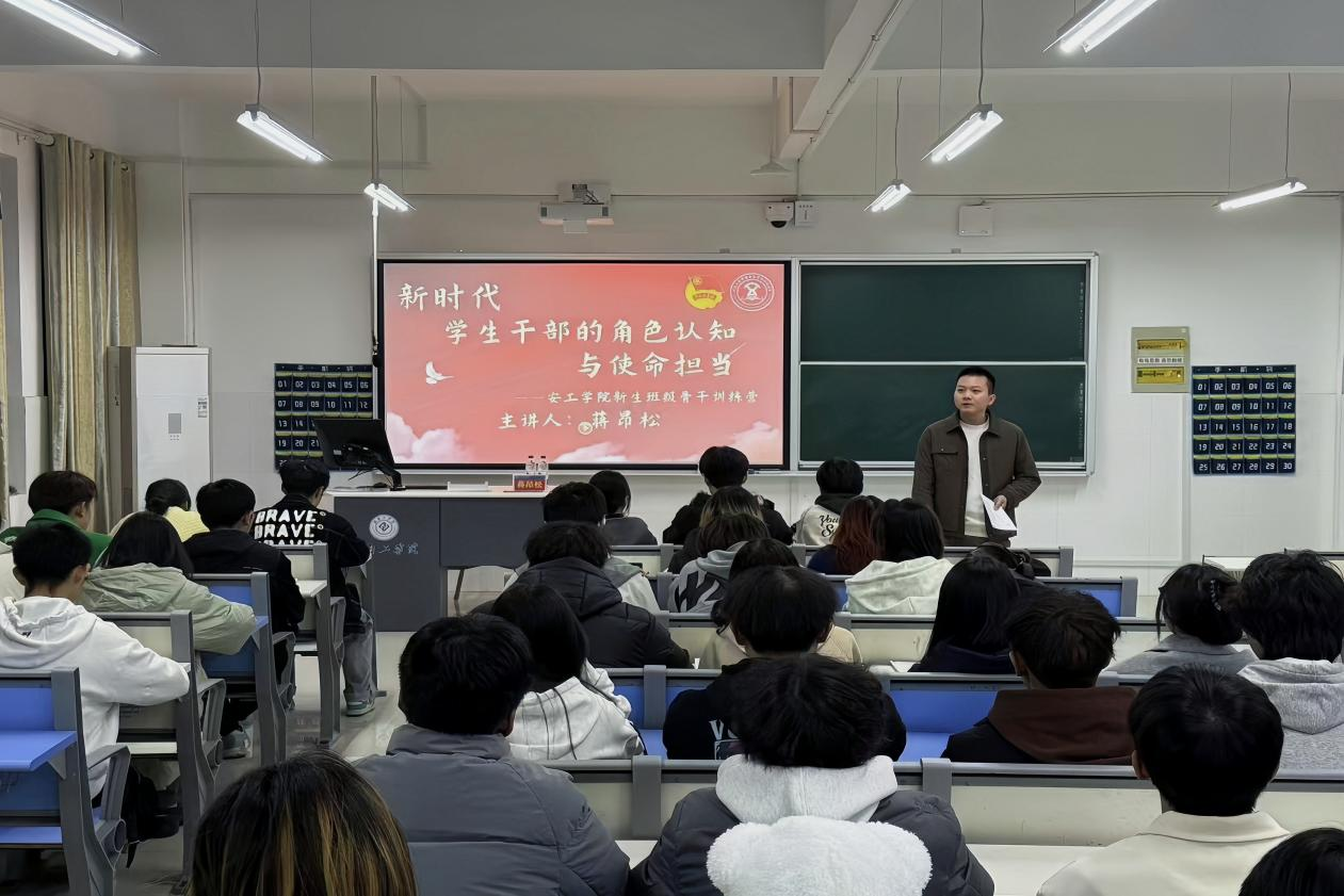 “在新时代,学生干部的角色认知是什么?使命担当又是什么?……”带着这一连串的疑问,11月28日晚上,安工学院2024年新生班级骨干训练营活动在5307顺利开展。学院学工办主任兼分团委书记蒋昂松为全体大一新生班团和全体团学会干部授课。