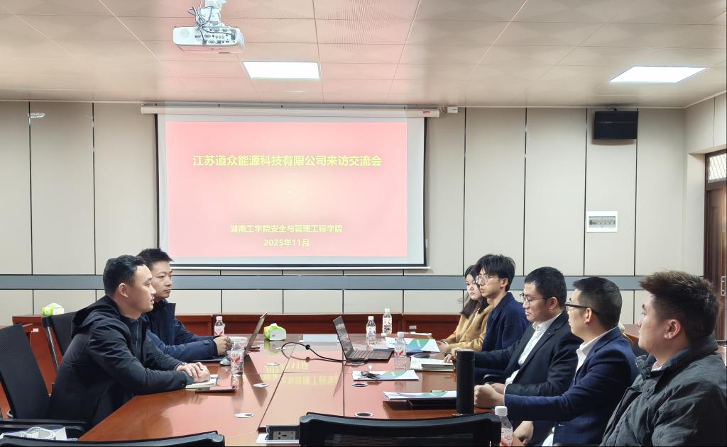 1120日上午,江苏道众能源科技有限公司总经理卢榕一行来访我院,开展成果转化与校企合作交流。安全与管理工程学院院副院长青涛主持交流会,我院多位教师、博士参加交流会。
