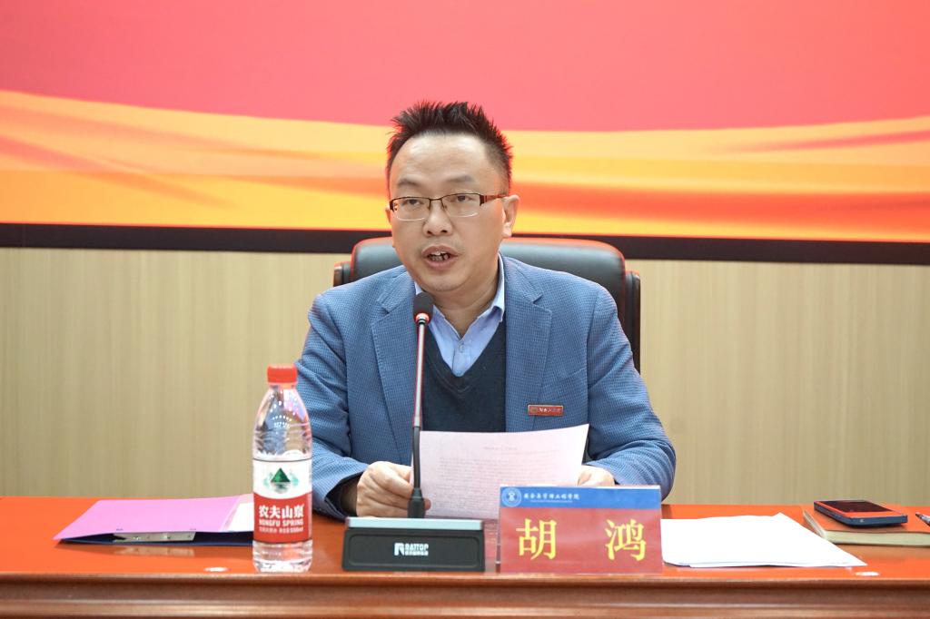随后,院长胡鸿致辞。他充分肯定了第十七届团委、学生会过去一年的辛勤付出与显著成绩,并对新一届学生骨干寄予厚望,勉励他们继续发挥桥梁纽带作用。