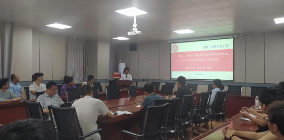 2023年6月20日,常州大学欧红香教授应邀在安工楼5501学术报告厅开展了以“‘三融合、双驱动’模式推进安全通识课程教学实践”为主题的交流座谈。安工学院院长胡鸿、副院长青涛、党委副书记黄宏格、青年教师代表以及学生代表等出席座谈会,会议由青涛主持。