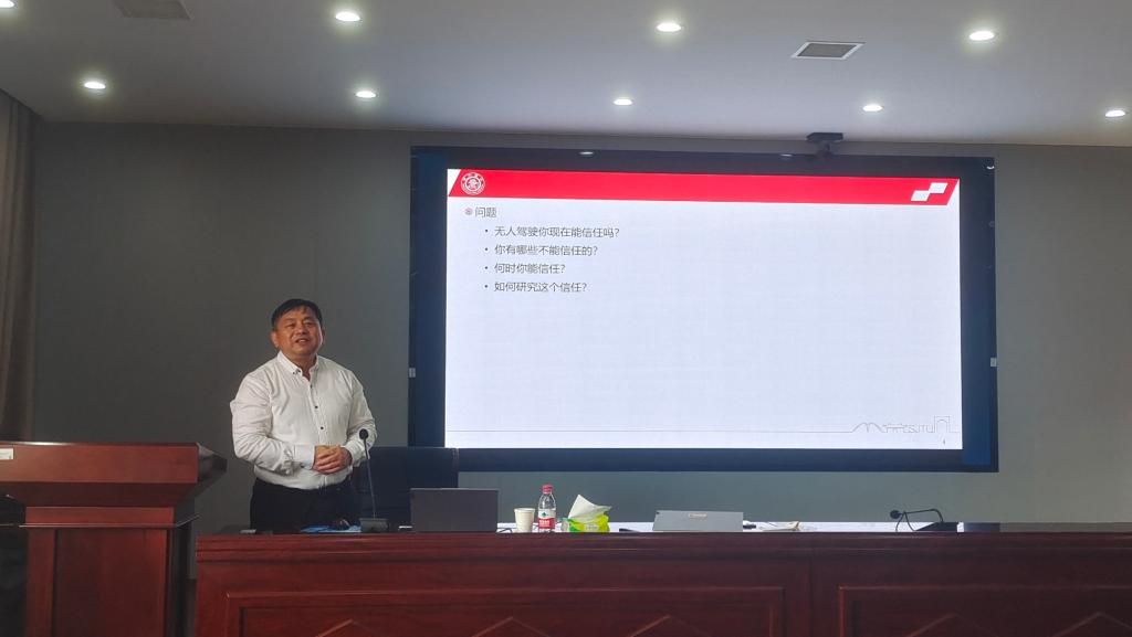 蒋祖华首先通过“无人驾驶你现在能信任吗?”等问题与师生进行互动,引出讲座主题。然后,他深入分析了人因实验研究中的重要问题、人因实验设计范式的定义和特点,并重点阐述了人因实验研究中的八个要件。最后,针对几类实例提出了人因实验设计的具体改进建议。提问环节,蒋祖华耐心详细地解答了师生的问题,现场气氛热烈。