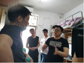 2020年6月4日安工党支部书记易灿南、左华丽与傅娜老师一起走访了安全工程专业毕业班男生所在顺风宿舍,了解到因疫情影响有部分同学毕业设计(论文)遇到困难,5日上午易书记心生一念,决定把本月主题党日活动开到毕业生宿舍,上午11点多她在安工党支部QQ群发起倡议,不到30分钟得到全体党员积极响应,临时决议把当天当日活动改为下宿舍送指导,为有困难的毕业生提供现场综合指导,按照党员教师擅长领域分成3个综合指导小组,于14:30开始分别赴安工毕业所在的“润泽”女生宿舍与“顺风”男生宿舍,在带班辅导员傅娜与黄桂南老师协助下,对毕业设计存在困难学生开展有针对性与专业性的集体指导。
