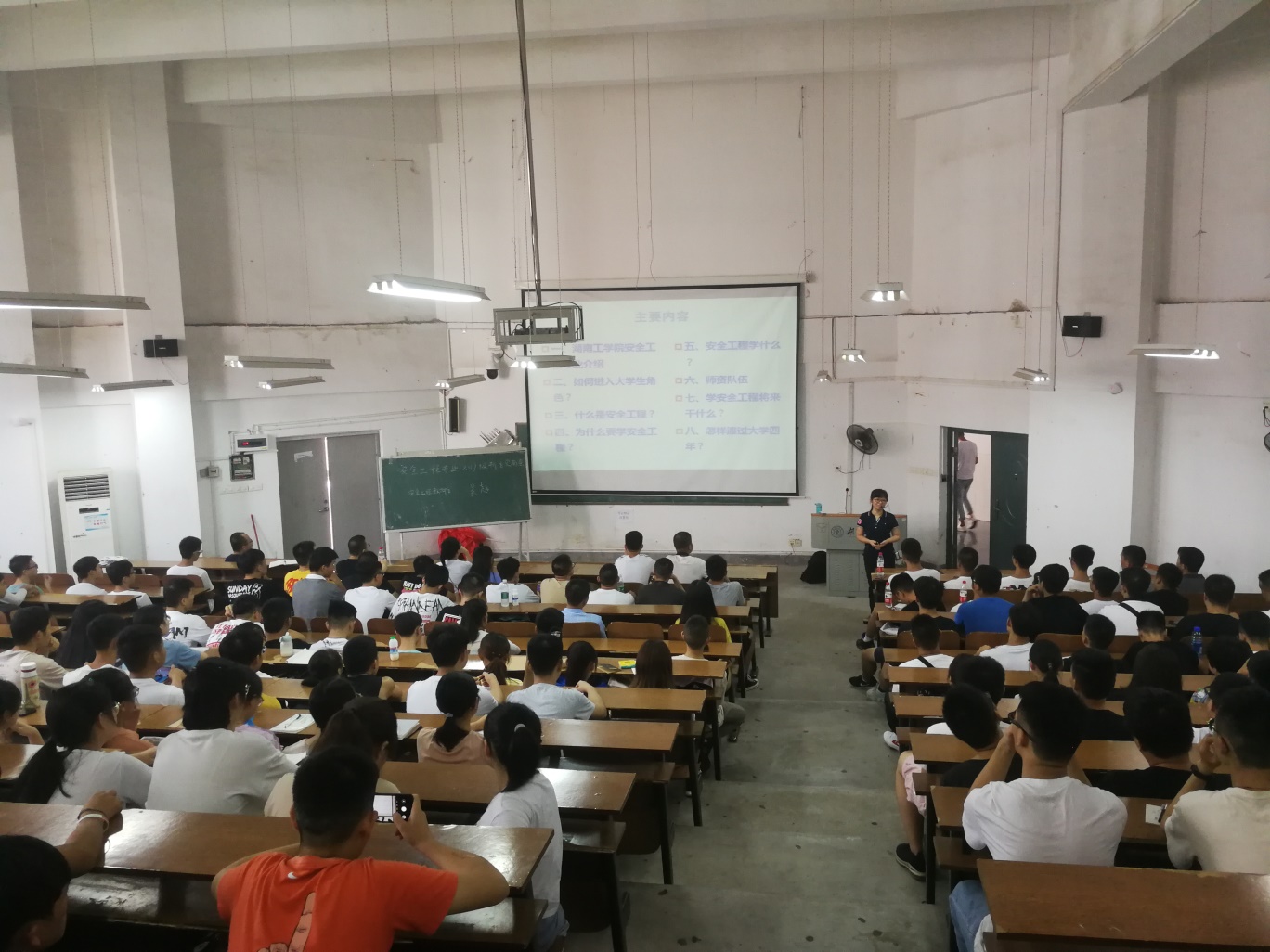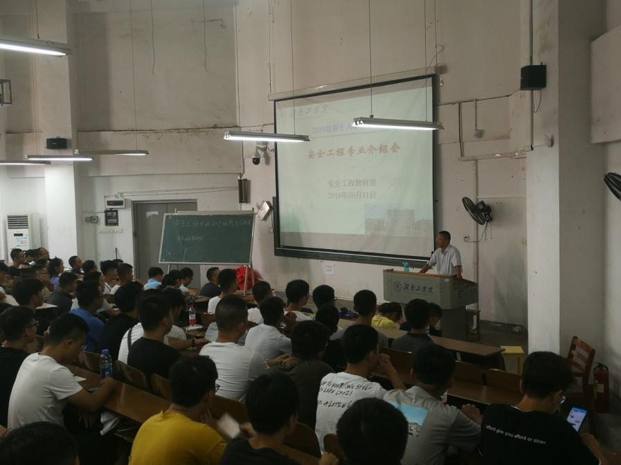 2019年9月11日上午10:20-11:30,安全与环境工程学院安全工程教研室在3409进行了2019级安全工程专业新生入学教育专业介绍会。廖可兵等院领导、安工教研室部分老师、学工办老师以及2019年安全工程专业新生参与会议,会议由易玉枚老师主持。