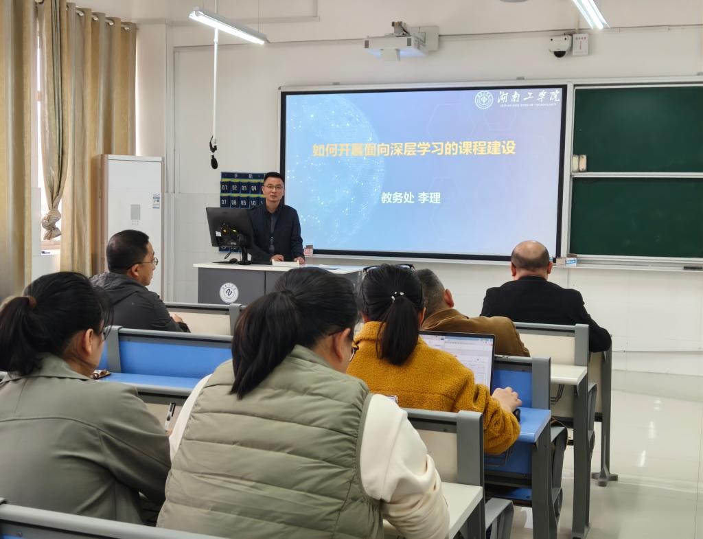 1028日下午,安工学院特邀教务处处长李理教授,在安工楼5307智慧教室开展课程建设专题培训。本次培训由院长胡鸿主持,学院全体教师参加。