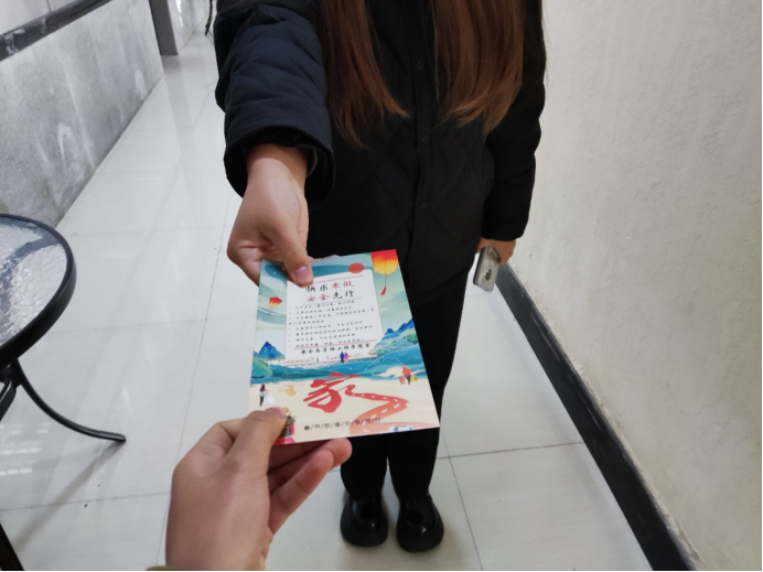 2022年的钟声即将敲响,同学们也即将迎来一个美好的寒假,但安全教育工作不能松懈。为增强我院学生安全意识,12月31日,安工学院为学生们发放安全提示卡,让安全教育时刻伴随学生身边!