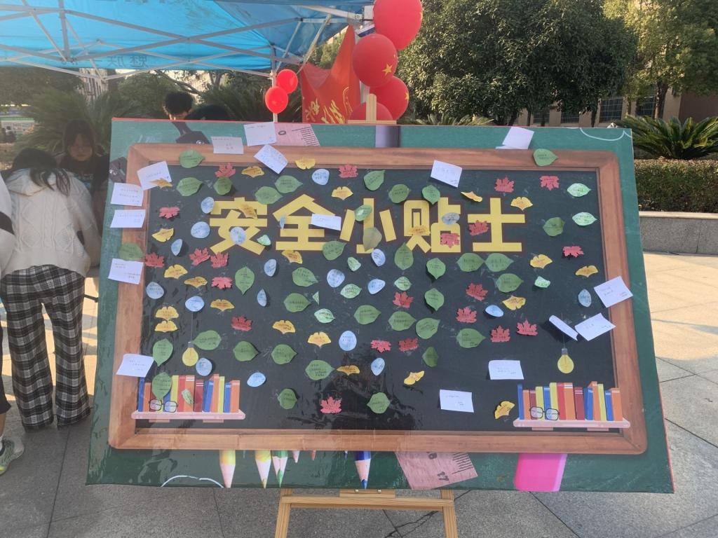前期,我院还在学校图书馆前坪、食堂前坪开展了“安全伴我行”安全科普活动,旨在唤起大家对安全的重视。活动现场吸引了近千名同学驻足,纷纷写下了安全小贴士。
