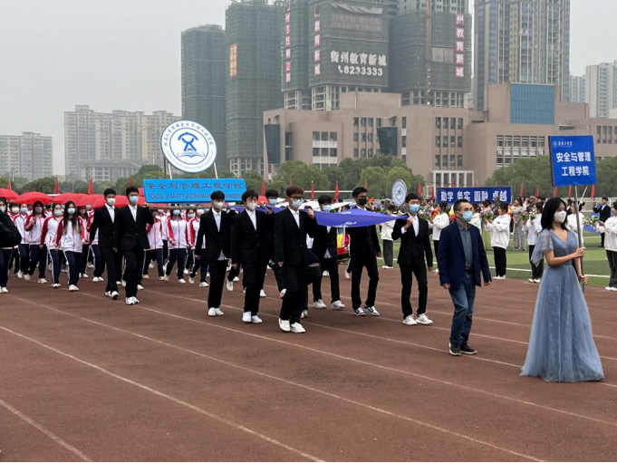 在开幕式的现场,我院方阵队迈着整齐的步伐,雄赳赳,气昂昂地走过主席台。“顽强拼搏,超越极限,青春向党,强国有我”的口号彰显了安工学子朝气蓬勃、拼搏向上的精神毅力。
