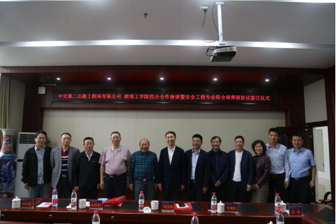 5月18日上午,中交二公局-开元集团网站校企合作座谈会暨安全工程专业联合培养班签订仪式于教学大楼12楼会议室顺利举行。副校长刘升学、刘龙昌,教学质量监控与评估中心主任彭志忠、招生与就业处处长彭立新、继续教育学院院长杨国辉和中交二公局党委副书记谢国强、中交二公局人力资源部副总经理柴兆红、中交二公局安全管理部副总经理尉鹏、中交二公局四公司党委副书记阮明和、中交二公局隧道公司安全管理部经理兼校友代表刘兴建、中交二公局各分公司人事部经理出席此次会议。