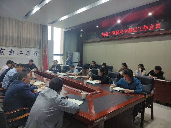 4月25日上午,校党委书记曹执令在教学大楼12楼会议室主持召开学校安全稳定工作会议。校党委委员、副校长谢柯出席会议。
