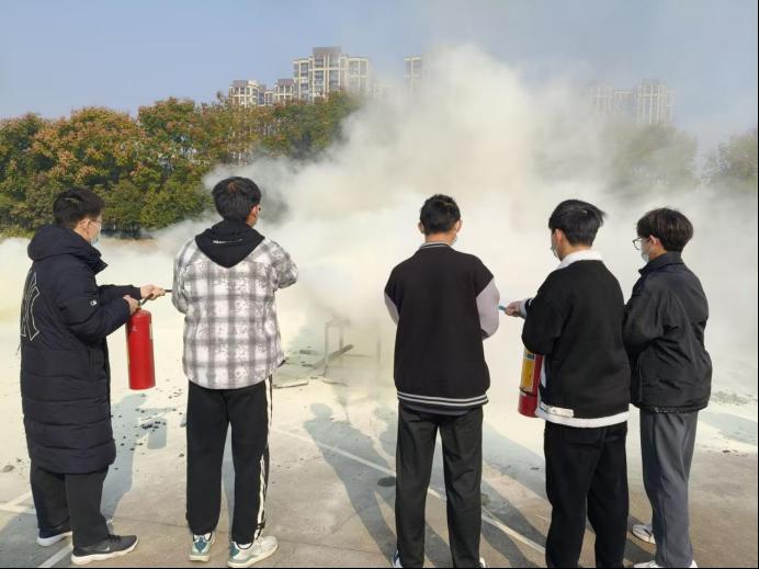 此外,讲座结束后,大家移步北操进行灭火器使用教学,通过亲身实践灭火操作,让同学们对消防安全有了更深刻的认识。