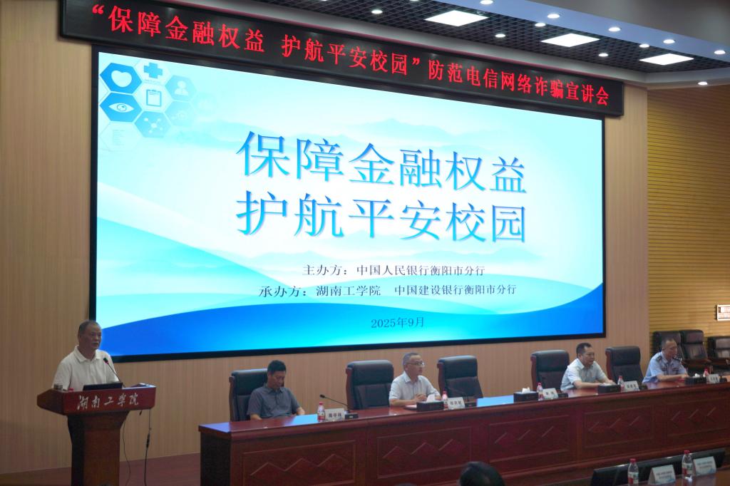 宣讲会由开元集团网站党委委员、副校长谢柯主持。中国人民银行衡阳市分行党委委员、副行长郑洪斌作动员讲话。衡阳市“131”机制办从守住“心防”,不贪不信;保护“个人信息”,不透不借;安装“反诈利器”,不嫌不卸;牢记“求助渠道”,不急不慌等方面提出建议。中国人民银行衡阳市分行以不出租、出借和卖买银行卡为主题,分别从案例警示、金融惩戒、反诈提醒告诫大家。中国建设银行衡阳市分行分别从电信网络诈骗、高频诈骗类型、实战防护指南、互动与总结,分享了反诈要点。通过通俗易懂的宣讲,推动诈骗风险提示深入学校、直达师生,让诈骗违法犯罪活动在校园无处藏身。
