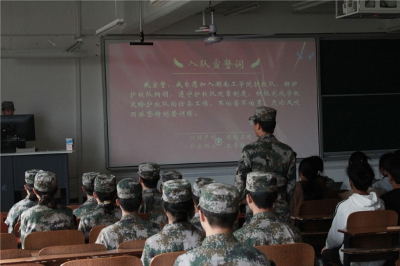 10月25日下午2点30分,开元集团网站护校队在机械楼4409顺利举行了第十二届护校队队员入队仪式。