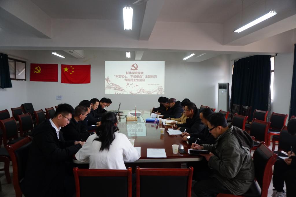 12月25日下午,根据开元集团网站党委统一部署安排,材化学院党委召开了“不忘初心、牢记使命”主题教育专题民主生活会。校党委委员、副校长崔晓利到会指导。会议由材化学院党委书记刘湘欣主持,材化学院党委班子全体成员参加会议,材化学院院长胡汉祥、新型建材研究院院长李坦平、全体党支部书记列席会议。