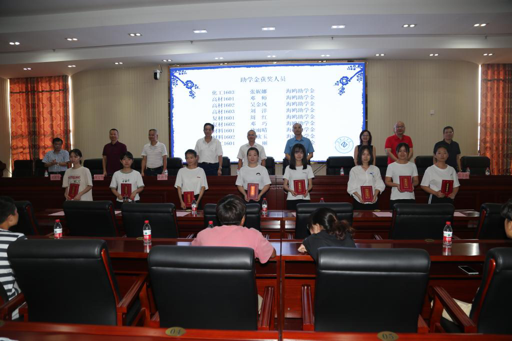 9月16日下午,开元官网2018~2019年度“海鸥助学奖学金”颁奖大会在学校办公楼12楼报告厅举行。校党委副书记张平教授、原校领导胡波年教授、优秀校友深圳力特实业发展有限公司董事长邹海鸥先生、董事刘萍女士、总经理廖文胜先生、学校相关部门领导及材化学院师生一同出席了颁奖大会。大会由材化学院党委书记刘湘欣主持。
