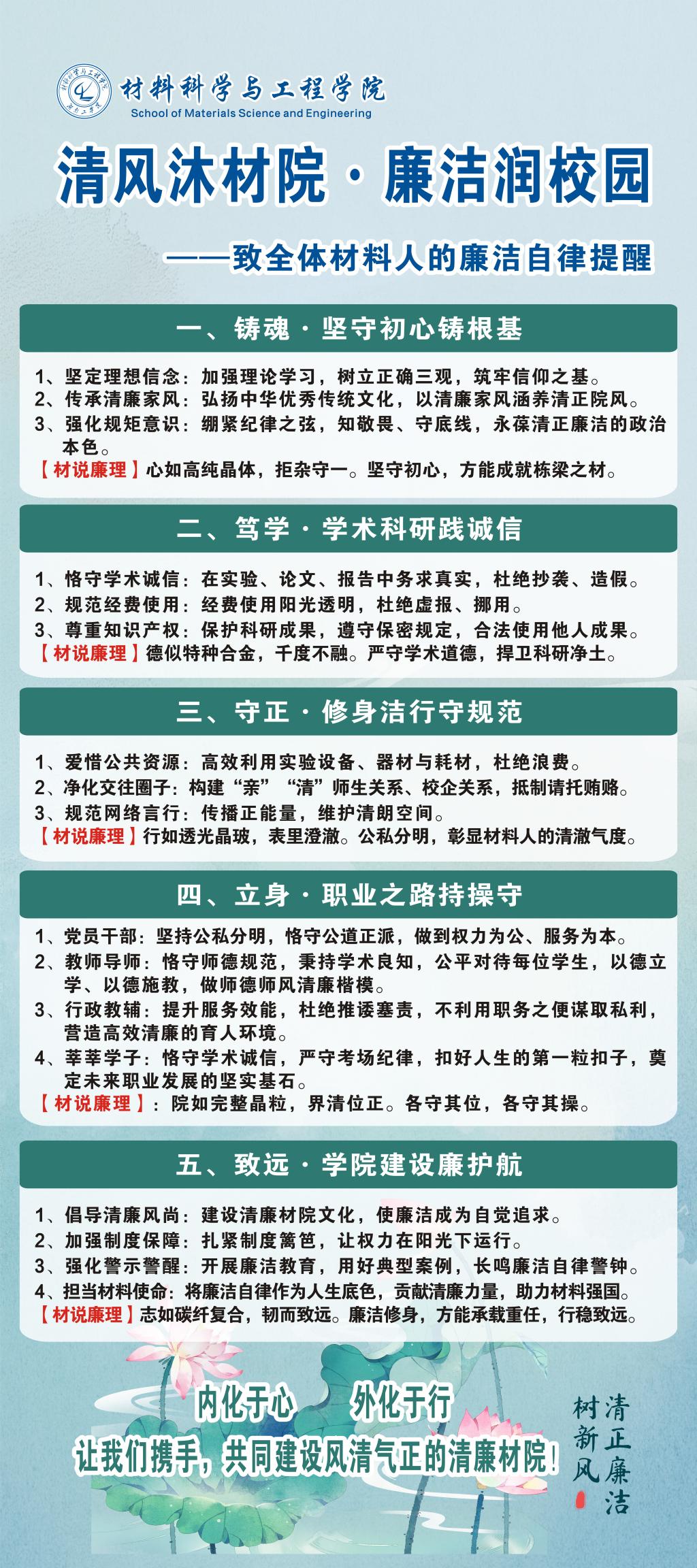 【材说廉理】清风沐材院·廉洁润校园 ——致全体材料人的廉洁自律提醒