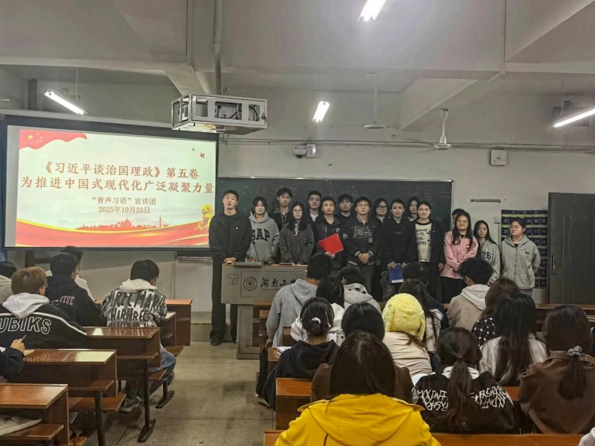 支部创新,知行联动提升感染力。各党支部积极创新学习载体,推动理论学习从“平面”走向“立体”。一是开展师生支部结对观影,组织观看电影《窗外是蓝星》,并结合《习近平谈治国理政》第五卷中“航天事业与中国式现代化”等重要论述开展研讨,使理论学习在光影叙事中更加生动鲜活。二是精心组织“思享会”,师生党员围绕著作中“一国两制”实践和祖国统一等主题展开深入交流,在思想碰撞中深化理解、凝聚共识。三是推动理论宣讲下沉班级,“青声习语”党员宣讲团开展“送讲上门”活动,用青年语言向同学们阐释理论内涵。