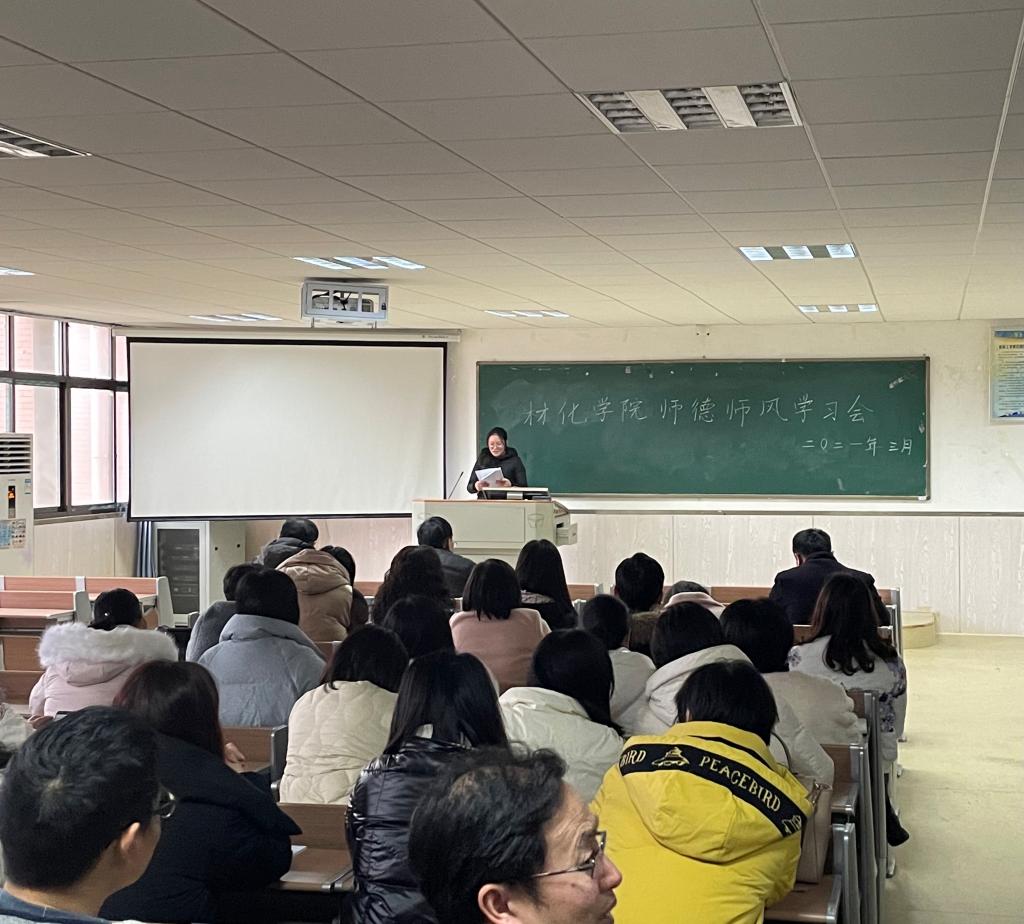 会议最后,陈凌霄老师领学了教育部对高校教师师德师风的相关文件《关于正确认识和规范使用高校人才称号工作整改方案》(湘教发[2021]7号)、《违反教师职业行为十项准则典型问题》等文件精神,指出师德师风对教师的重要性,让全体教师深刻认识到:作为人民教师,要不断提升自我,爱岗敬业,时刻高标准要求自己,以德育人,才能桃李芬芳。(材料与化学工程学院)