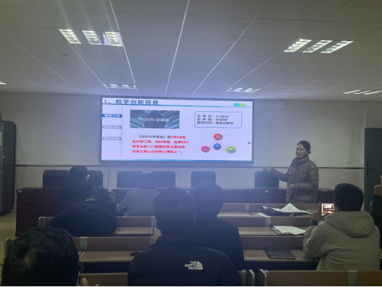 来自无机非金属材料工程教研室的张婵娟老师、实验中心的侯伟老师、材料科学与工程教研室的刘春泉老师同台竞技,分别汇报展示了各自专业课程建设与教学创新成果。刘先兰教授、周斌教授和各位评委对三位老师的汇报进行了精彩点评,提出了中肯的意见与富有建设性的建议。经过激烈角逐,来自材料科学与工程学院的侯伟老师凭借清晰的思路与突出的教学创新成果荣获院级一等奖,刘春泉和张婵娟老师荣获院级二等奖。