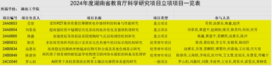 根据《关于公布2024年湖南省教育厅科学研究项目立项结果的通知》(湘教通【2024】251号文件),我院吴智老师的《柔性PZT基异质叠层薄膜铁电存储材料的制备与性能研究》 等3个重点项目、3个优秀青年项目和1个一般项目共计7个项目获得立项资助。这是我院在湖南省教育厅科学研究项目立项最多的一次,也印证我院教师科研实力在不断提升,希望获得资助的老师能够更上一层楼,获得更多更高水平的科研项目。