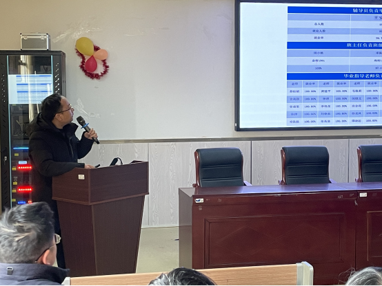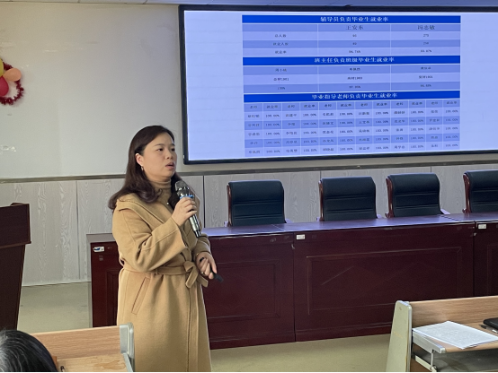 就业专干李前奔汇报了学院2023届就业工作完成情况。材料学院23届毕业生就业去向落实率为93.77%,全校排名第二。其中高质量就业299人,81.03%,比去年提高20个百分点;考研录取62人,16.8%,连续两年位列全校第一。就业全过程实现了院领导、就业专干、辅导员、班主任、毕业生论文指导老师五级联动,通过挂图作战、建立动态台账,逐月推进,推动毕业生就业率稳步提升,未出现就业率暴增暴减。