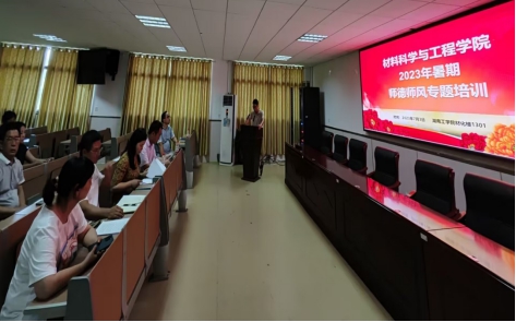 为进一步加强师德师风建设,不断提高全体教职工的思想政治素质和师德水平,7月3日下午,材料科学与工程学院在1301报告厅举办师德师风培训会议,本次培训会由院党委书记刘赢时主持,全体教职工参加。