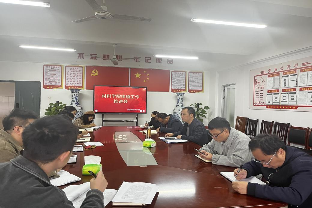 11月21日,为进一步落实申硕任务、扎实推进申硕工作,材料科学与工程学院在材化楼1401会议室召开申硕工作推进会。会议由院长罗建新主持,院领导、教研室/实验室正副主任、三办主任参加了会议。