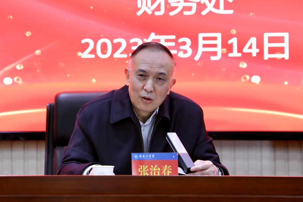 3月14日上午,学校在船山报告厅召开2023年预算编制会议,校党委委员、纪委书记张治春出席会议,校党委委员、副校长何建雄主持会议。