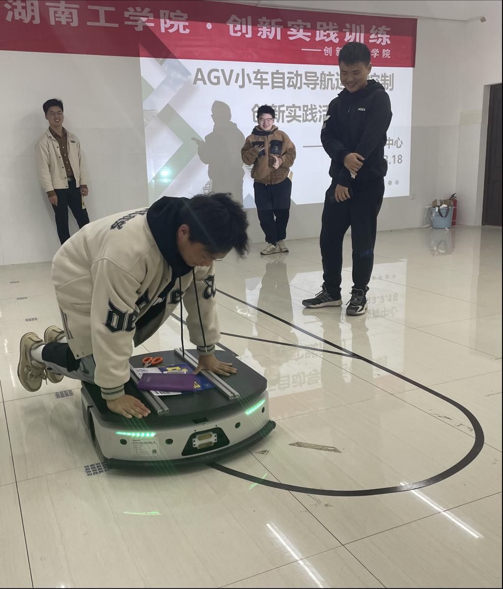 本次培训诚邀元创兴科技有限公司工程师孙争博以项目制教学的方式对AGV小车的自动导航运行控制相关内容进行了技术培训。孙老师不仅为同学们详细而生动地讲解了AGV自动导引运输小车的工作原理与相关工程应用案例,并一对一耐对项目团队运行调试AGV小车的自动导航、自动避障、故障分析与日常维护等实践操作进行了精心的辅导。