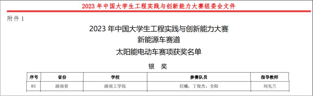 近日,大学生工程实践与创新能力大赛组委会公布了2023 年中国大学生工程实践与创新能力大赛总决赛名单,开元官网任曦团队设计的作品获得“新能源车”赛道“太阳能电动车”赛项国赛银奖。