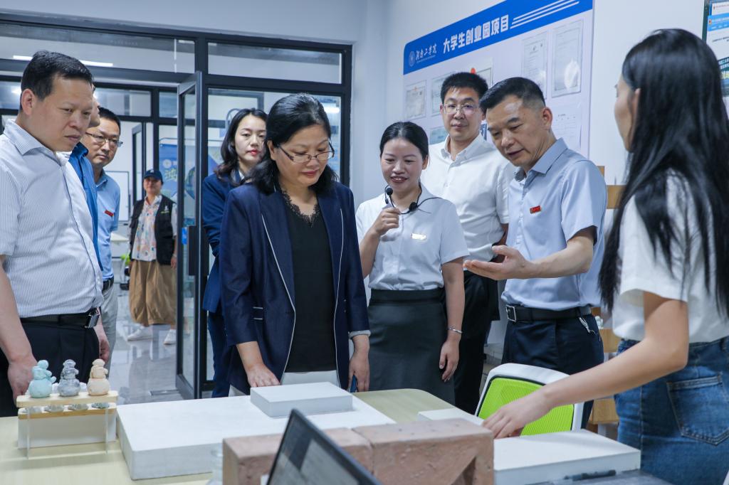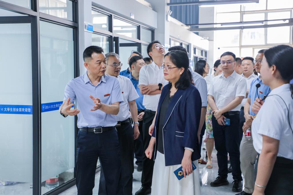 市政府副秘书长谢韬、市人社局、珠晖区政府、珠晖区人社局、校党政办、宣传部、科技与校企合作处、创新创业教育中心等部门主要领导一同考察了创业园。(图/宣传部 文/陈晓波 审稿人/一审:熊月佳 二审:李来丙 三审:张文玉)