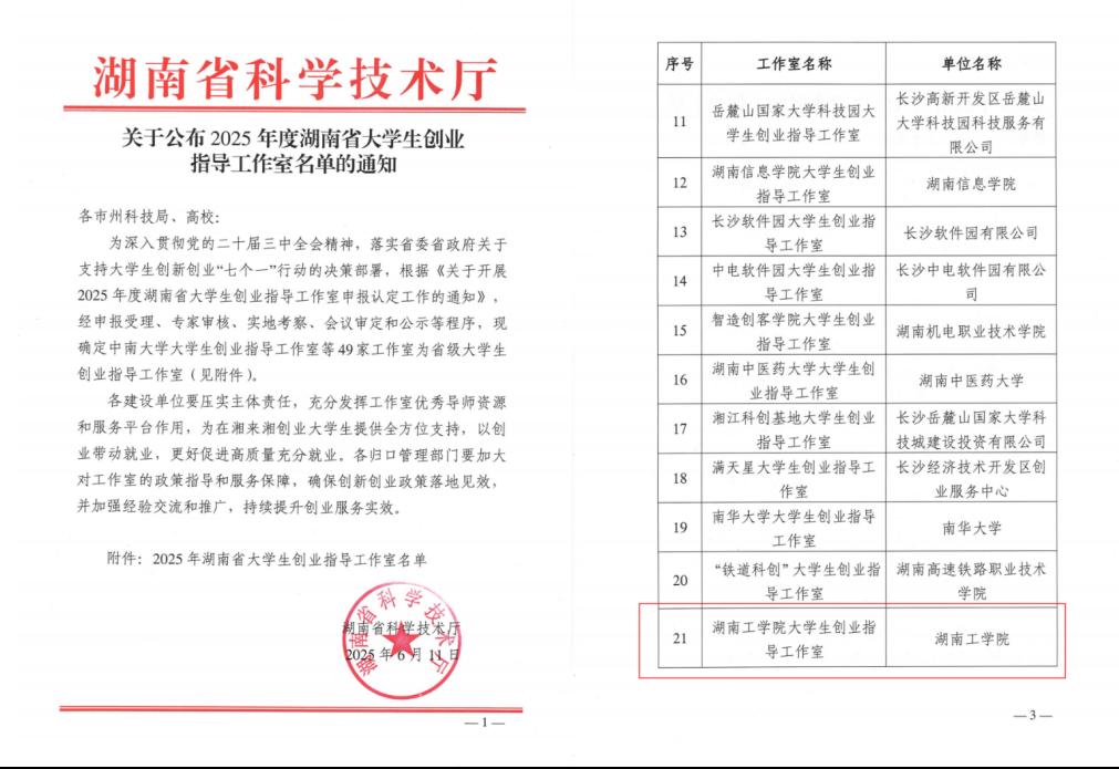 近日,湖南省科学技术厅公布了2025年度湖南省大学生创业指导工作室名单,开元官网申报的“开元集团网站大学生创业指导工作室”成功入选,这是开元官网贯彻落实省委省政府“七个一”行动部署中取得的一项重要成绩。