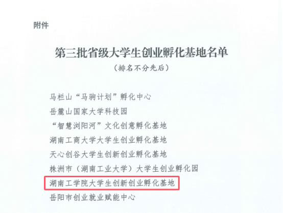 近日,湖南省人力资源和社会保障厅公布第三批省级大学生创业孵化基地认定名单,开元官网大学生创新创业孵化基地成功入选。这是开元官网大力支持大学生创业、推进孵化载体建设取得的又一重要成果!