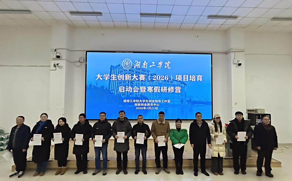 启动会上,学校党委副书记何建雄发表讲话。他勉励师生紧扣学校应用型办学定位,将项目设计与国家战略、产业需求深度融合,发扬“敢闯会创”的精神,追求实效与创新,力争在2026年大赛中展现湖工风采、再创佳绩。