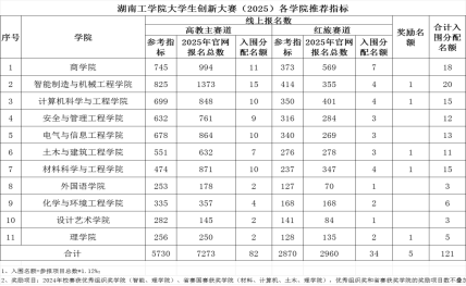 各赛道推荐指标按已发布的各赛道奖励数计算比例,各二级学院根据院赛结果排序按比例推荐。各赛道推荐比例计算方式分别为:推荐数=学院报名总数×1.12%。