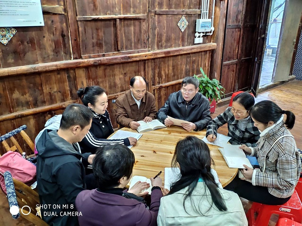 在村民的木屋内,党支部书记刘金春以“精准扶贫,党在践行初心使命”为主题,给大家上了一堂生动的党课。他从“扶贫开发党的历史使命、我国扶贫开发的历史进程和成效、我国扶贫工作的主要经验、精准扶贫是中国共产党人在践行初心和使命”四个方面,讲述了新中国成立以来,中国共产党为实现中华民族共同富裕,带领全国各族人民坚持不懈地持续开展扶贫脱贫的历史史章。特别是,在“精准扶贫”首倡地讲述有关“精准扶贫”党课,同志们身临其境更有感触,更加坚定了“不忘初心、牢记使命”的坚强信念和决心。