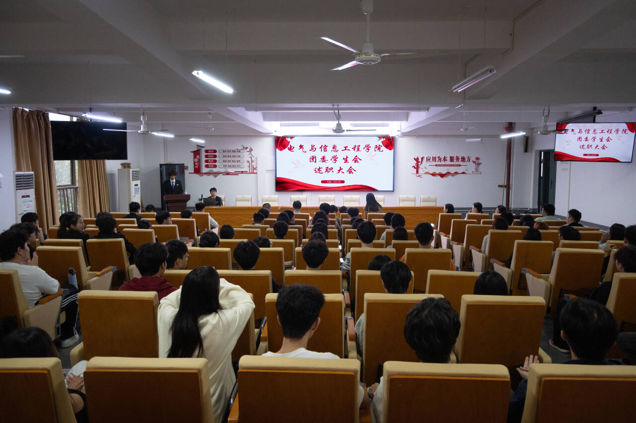 为强化团学组织内部管理和监督,促进团队协作,提高工作效能,电气与信息工程学院于4月27日18点在3312举办了述职大会。电信学院党委书记喻霞,党委副书记周艳红,副院长刘海波,团委书记刘蕾,全体辅导员及全体团委学生会成员参加。