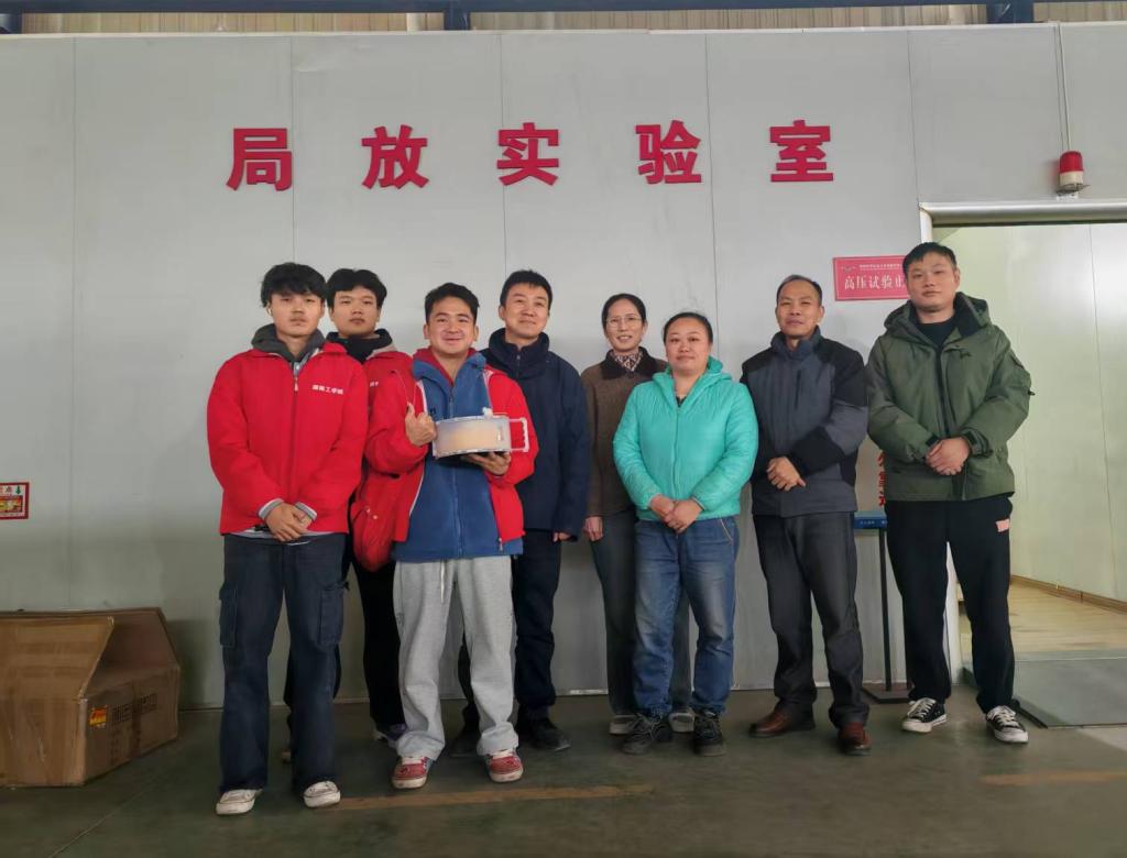 团队成员在肖冬瑞、王晓丽老师的现场指导下,严格遵循行业规范与合同约定,运用团队自研设备对企业相关产品进行检测。从样本采集、数据监测到结果分析,团队成员分工协作、精准操作,不放过任何细节问题。指导老师全程把控检测步骤,针对现场遇到的技术难点,与团队成员、企业技术人员共同研讨解决方案,确保检测数据的准确性与可靠性。