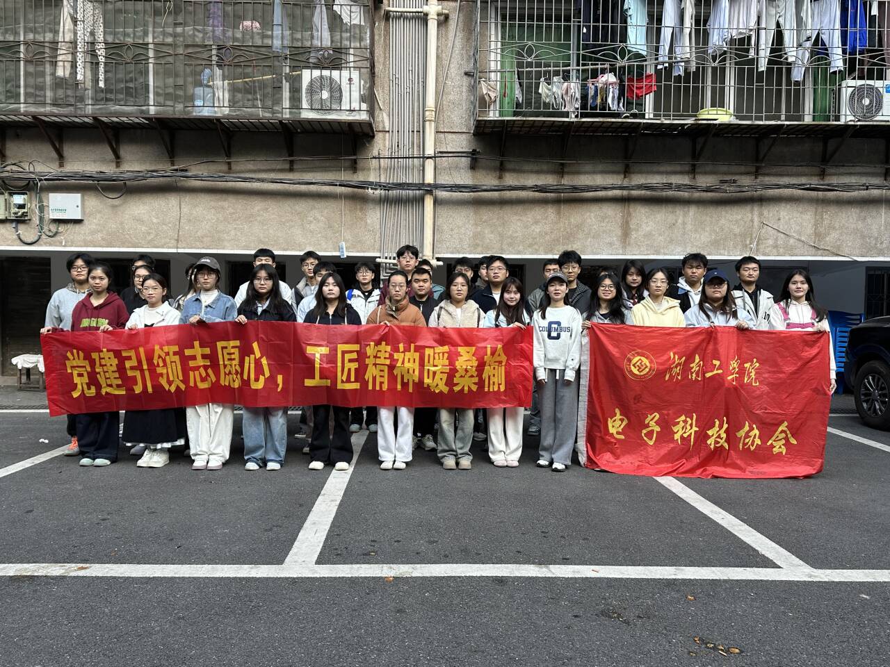 在衡阳市党史馆,学子们通过历史图片、实物展品与沉浸式影像,回顾衡阳地区革命、建设、改革历程,感悟革命先辈的理想信念与奉献精神。随后走进石坳社区,搭建服务站点接收故障家电,队员们分工协作,凭专业知识排查维修电风扇、电饭煲等常用电器,讲解保养技巧,对无法现场修复的电器登记后承诺送还,切实解决居民尤其是老年群体的生活难题,获一致好评。