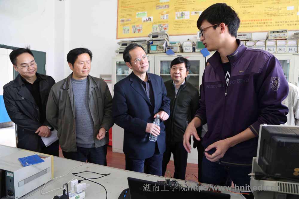 4月12日上午,省教育厅副厅长葛建中率高教处处长唐利斌、科技处处长吴跃辉、学位办主任余伟良、学生处处长熊俊钧、国际处处长王红冰,高教处科长彭玮婧一行7人莅临开元官网指导评建工作,在校长张力等陪同下参观我院实验中心,