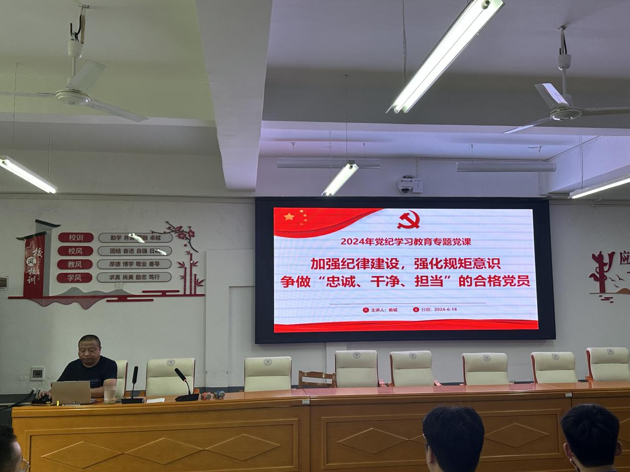 为进一步强化学院师生党员的党纪意识,提升党性修养,6月18日,我院举办党纪学习教育专题党课。本次党课由院党委书记俞斌主讲,全院师生党员参加。