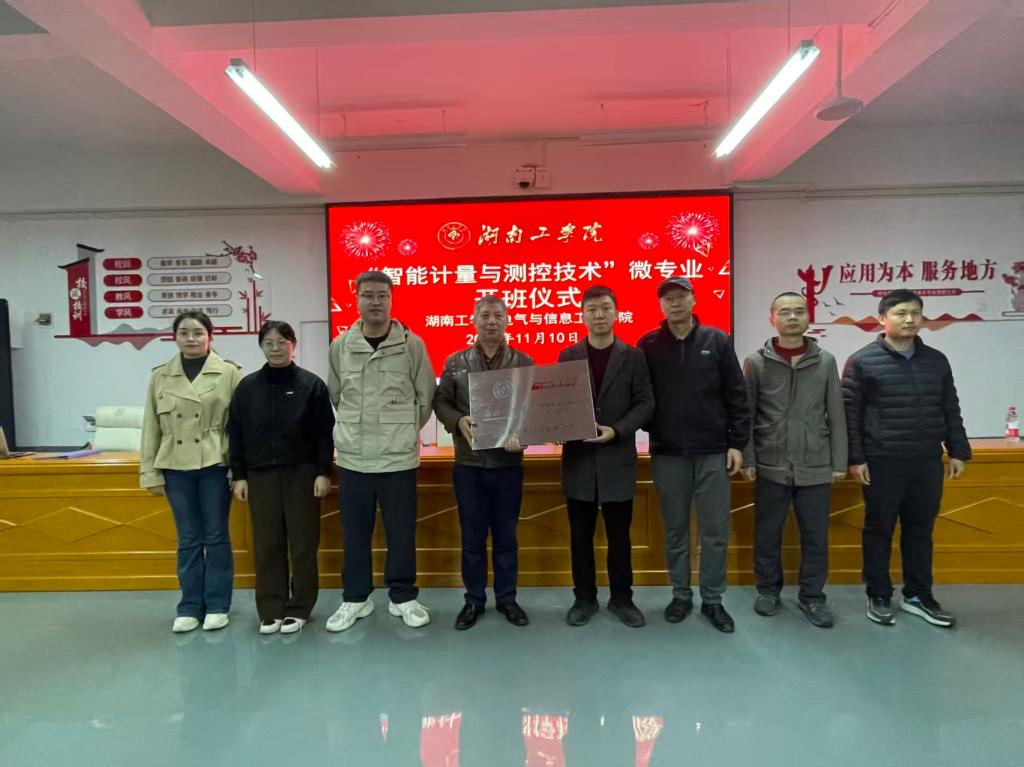 在全体师生的见证下,肖冬瑞副院长与毕才术董事长共同为“智能计量与测控技术微专业”揭牌,标志着该微专业正式启动。仪式结束后,与会师生合影留念。