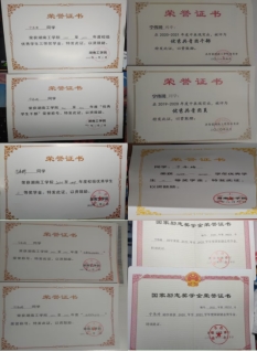 在校期间荣获国家励志奖学金两次、校级二等奖学金两次、校级三等奖学金、校级优秀学生干部、校级优秀共青团员、校级优秀学生干部标兵、校级优秀共青团干、优秀志愿者、优秀工作者、创青春科技竞赛校级三等奖,任职学习委员期间所在班级荣获校级优秀团支部、校级先进班集体等多项荣誉。