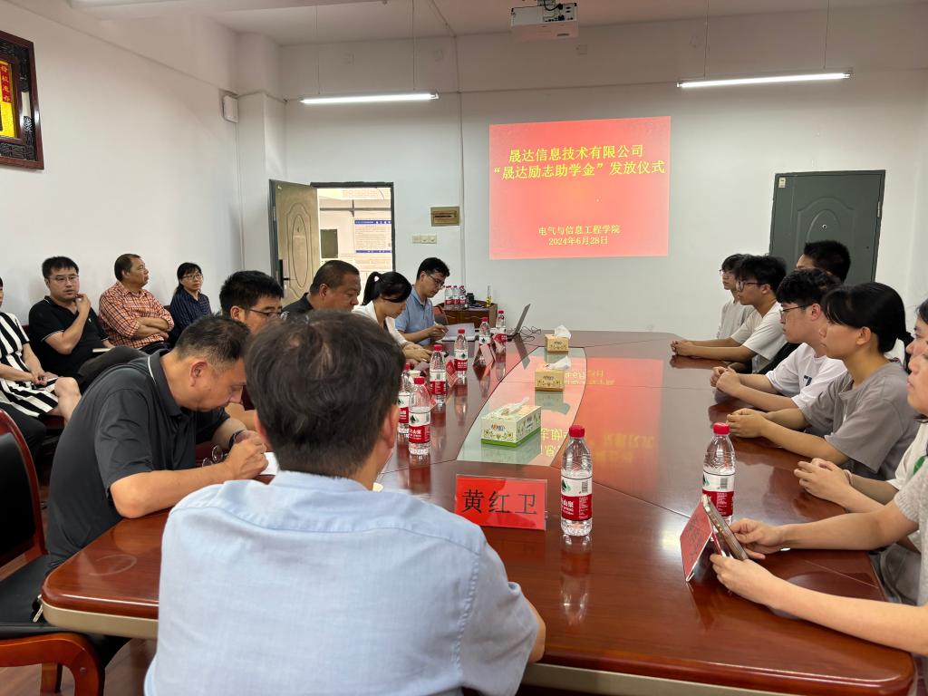 6月28日,由晟达信息技术有限公司赞助的“晟达励志助学金”发放仪式在电气与信息工程学院隆重举行。黄红卫副校长出席了仪式,参加仪式的还有晟达信息技术有限公司代表庾洁雯女士,后勤处处长贺旭、副处长黄煜、电气与信息工程学院的党政领导与部分教师以及受资助的学生。仪式由电气与信息工程学院俞斌书记主持。