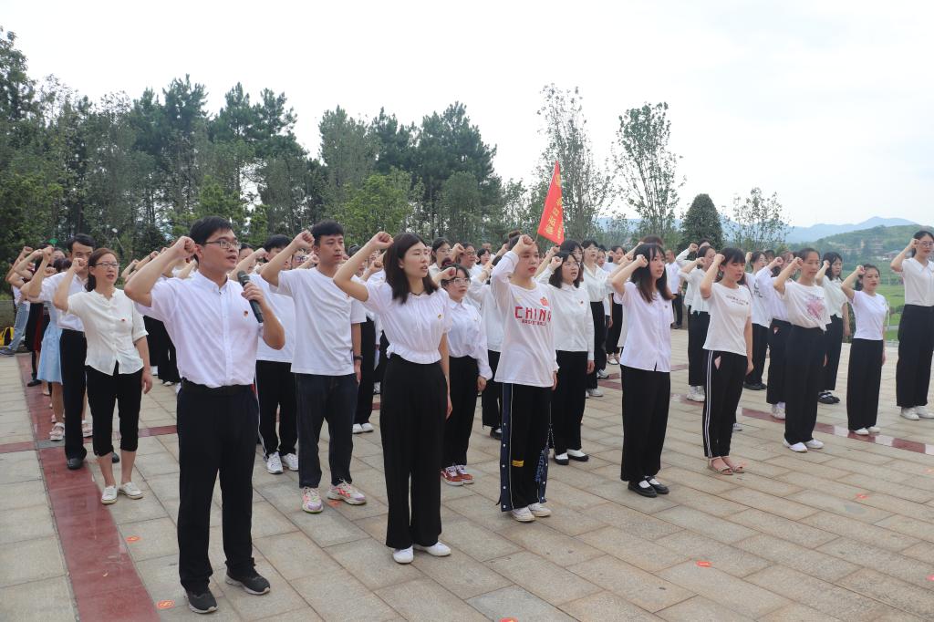 “没有共产党就没有新中国……”嘹亮的歌声响彻夏明烈士广场。6月28日,外国语学院党委组织学院全体党委委员、青年学生党员共79人在夏明翰烈士广场开展“重温百年党史 传承红色基因”主题党日活动,进行党史学习教育,隆重庆祝建党百年华诞。
