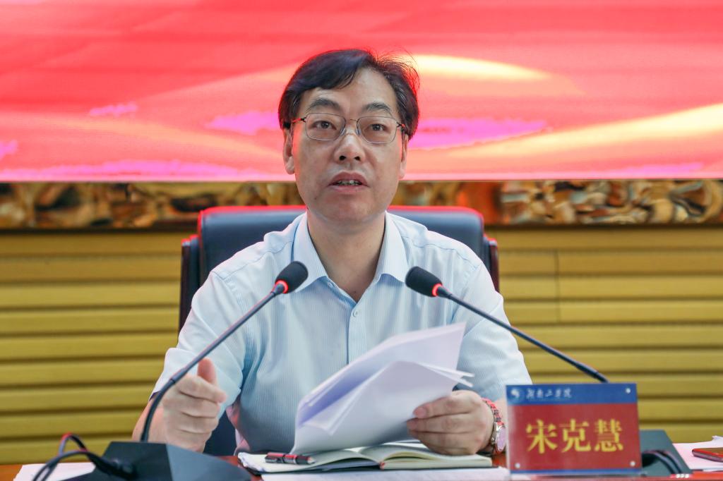 宋克慧指出中国共产党自建党以来,始终把为中国人民谋幸福、为中华民族谋复兴作为自己的初心使命,一百多年来,带领广大人民取得了一个又一个伟大胜利和成就。回顾学校发展史,学校党委始终坚持党的领导,坚守“为党育人、为国育才”的初心使命,全面贯彻党的教育方针、政策,团结带领全校师生锚定奋斗目标,沿着正确方向坚定前行。