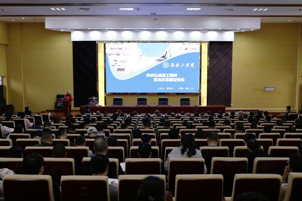 曹执令以《传承弘扬湖工精神 担当改革建设使命》为题,结合自身经历,与大家一起分享了他对到底什么是湖工精神、怎样看待湖工精神的时代价值、在学校快速高质量发展的新阶段如何传承和弘扬好湖工精神的思考。