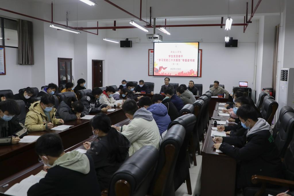 来自11个学院的82名学生党员原原本本、逐字逐句研读党的二十大报告,党委书记宋克慧、党委组织部常务副部长杨朗、党委宣传部、统战部常务副部长肖中云、党委学生工作部部长曹毅、团委书记贺令亚分别对报告内容作重点讲解。