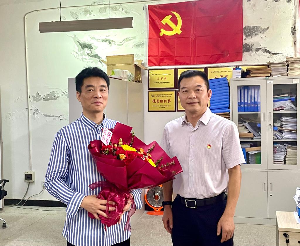 在中华人民共和国成立75周年前夕,27日,党委书记曹执令走访慰问湖南省优秀党务工作者、土木与建筑工程学院教师刘传辉。