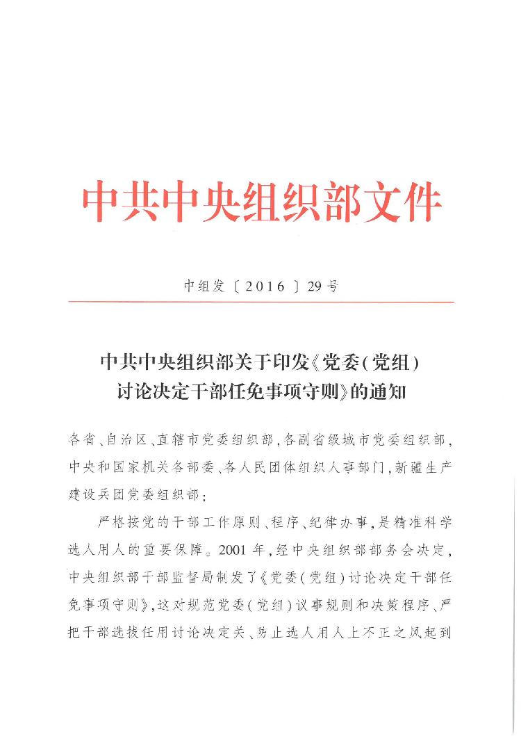 党委(党组)讨论决定干部任免事项守则