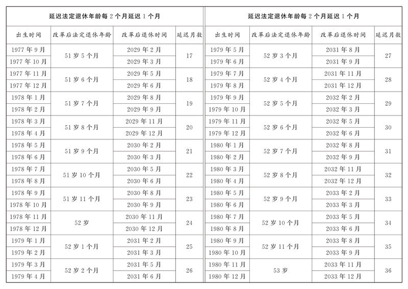 3.原法定退休年龄五十周岁的女职工延迟法定退休年龄对照表